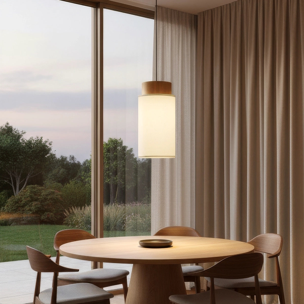 Die Leuchten bestehen aus einem zylindrischen Echtholz-Sockel und einem textilen Leuchtenschirm, welcher das Leuchtmittel umgibt. Das Leuchtmittel ist im Lieferumfang enthalten. Die meisten dimmbaren Leuchtmittel mit E27 Fassung können verwendet werden.